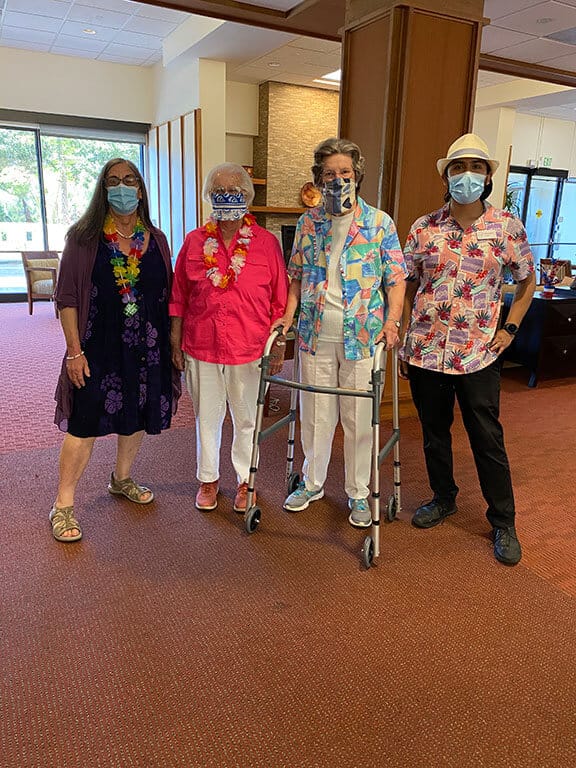 In May, staff and residents at The Tamalpais sported their favorite Hawaiian attire in honor of Sequoia Spirit Day, which takes place the fourth Friday of each month. On each Spirit Day, Tam residents and staff show their spirit by dressing up in a fun theme.