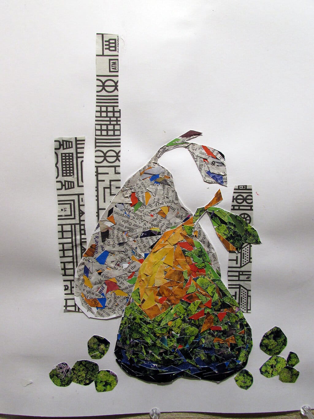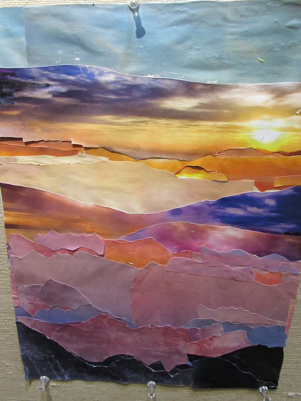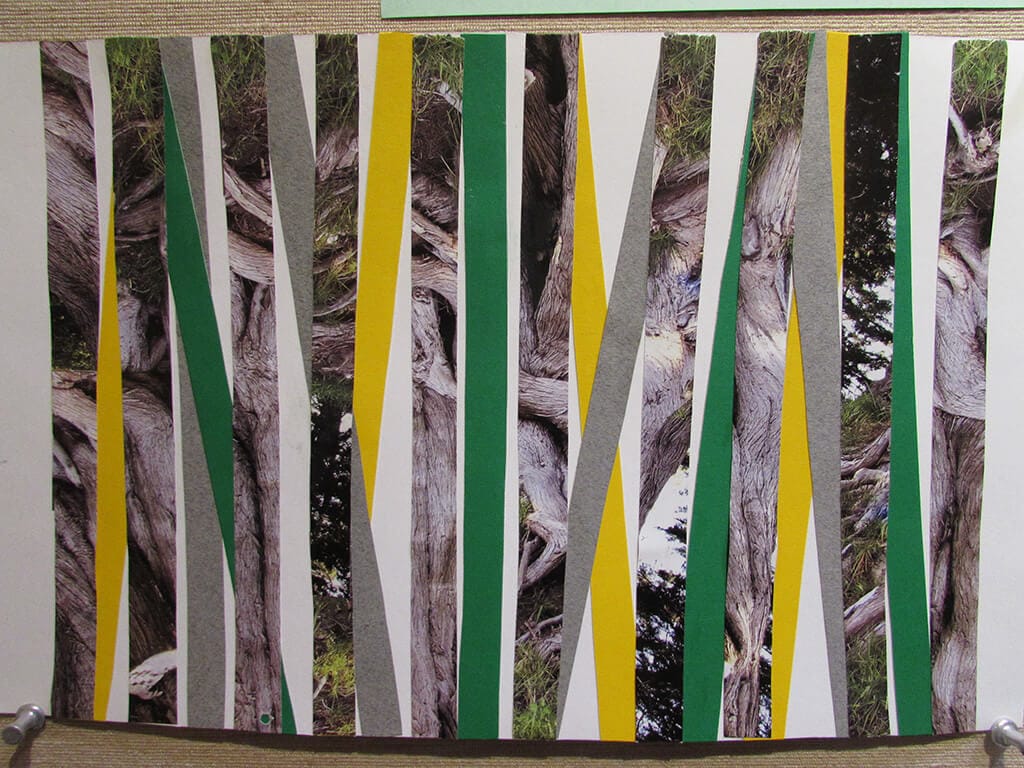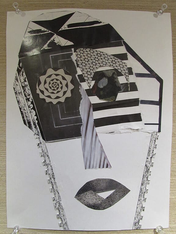 Each weekly class is divided in three parts. First, I give a hands-on demonstration of different techniques and approaches to collage. Next, I show a PowerPoint presentation introducing the next assignment, highlighting inspiring images by artists who used that particular theme or technique. Finally, each student is encouraged to talk about their work, and then the other students and I express our reactions to each piece and make suggestions for other possible ways to approach it.