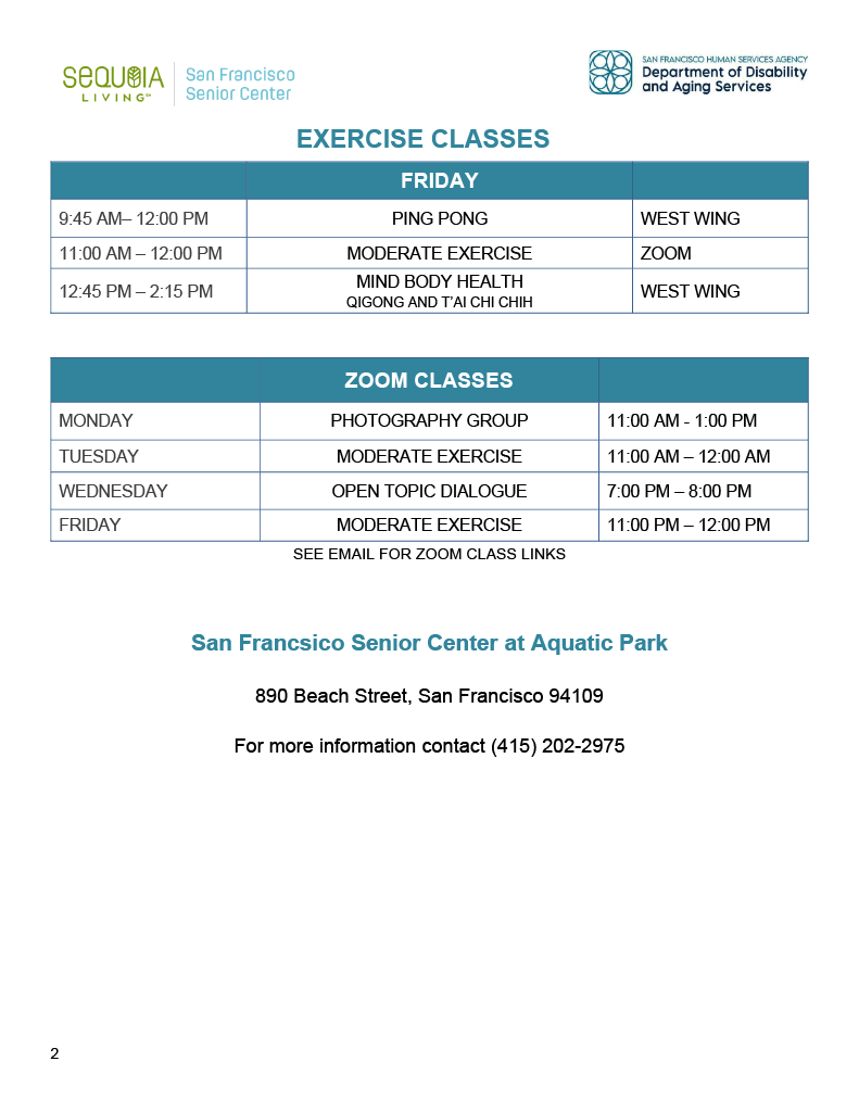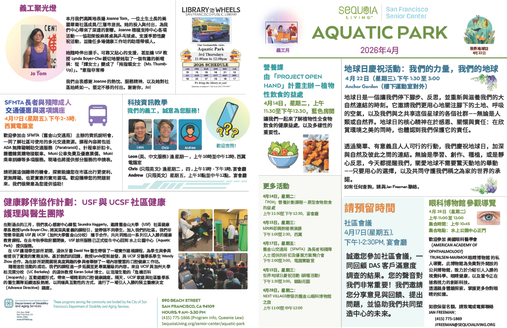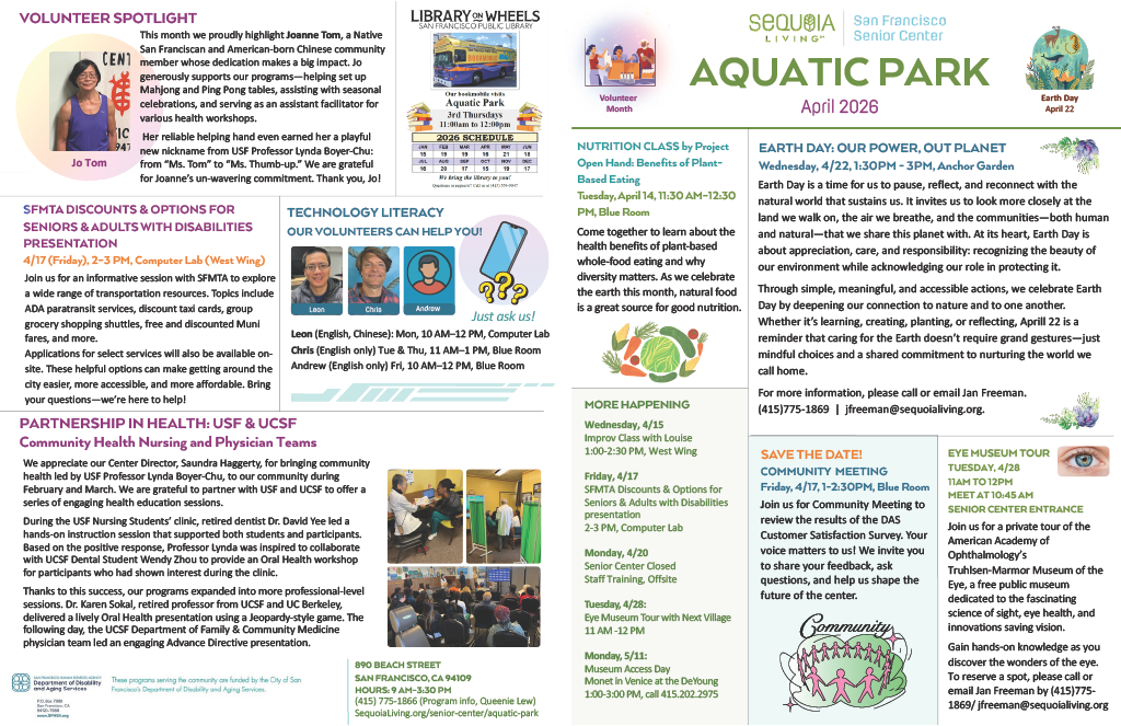 These programs serving the community are funded by the City of San Francisco’s Department of Disability and Aging Services.