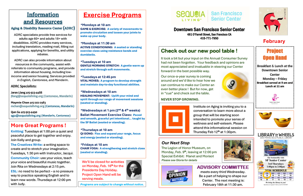 These programs serving the community are funded by the City of San Francisco’s Department of Disability and Aging Services.